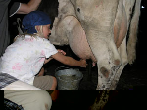 Unser Hof wird als Familienbetrieb seit über 30 Jahren biologisch geführt. Wir haben Kühe, Kälber, Zwergziegen, Hühner, Kaninchen und Katzen. Aus der ermolkenen Milch wird gereifte Käse, Grill- und Pfannenkäse und Jogurt hergestellt. Gerne dürfen Sie dabeisein und mitmachen oder zuschauen beim Kühe versorgen. |