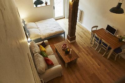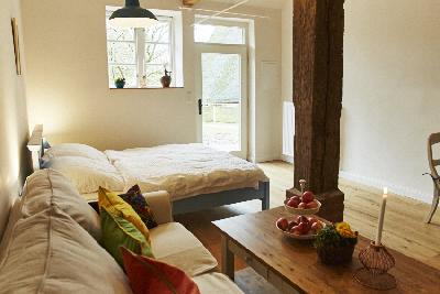 Fewos 2016 fertig gestellt. Wohnungen sind mit Landhausmöblen und Antiquitäten in sanften Naturfarben eingerichtet.