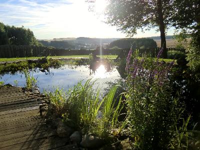 Traumhafte Fernsicht, Wild und Vögel, Fische und Amphibien als Nachbarn. Hinter der Umzäunung schließen sich Rad- und Wanderwege an und es ist nicht weit in den Zauberwald mit Nature-Fitness-Park oder in den Aqupark Pyramide; bitte Homepage www.adlerhorst-hunsrueck.de hierzu ansehen, dort Umgebung anklicken. |