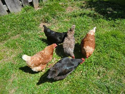 Begeisterte Abnehmer von Brot-, Gemüse- und Salatresten sind unsere freilaufenden Hühner, die sich mit leckeren Bio-Eiern dafür bedanken. |