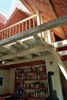 Das Erdgeschoß hat 110 qm Größe mit drei Schlafzimmern, eines davon, die Sternwarte ist zweistöckig mit einer kleinen Galerie, ein Bad mit einer gußeisernen Badewanne auf Füßen, einer großzügigen Küche und einem schönen Wohnbereich und 8 Betten. Eines davon ist ein "big brass bed"..
