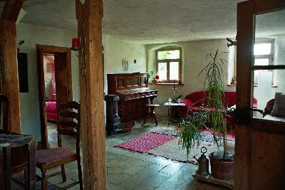 Zwei Sofas, ein schönes, altes Klavier, Tisch mit 8 Plätzen, der noch verlängert werden kann. Eine Biblothek im Anbau, Gesellschaftsspiele |