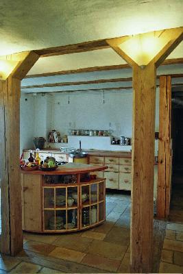 Die Einrichtung ist aus Vollholz. (Selbst gebaute Vollholzküchen, Dielenböden, recyclte Vollholztische und Stühle, alte Messingbetten, ein wunderschönes alt/neues Himmelbett aus Vollholz, alte Vollholzschränke. Alles mit Öl oder Leinölseife behandelt. |