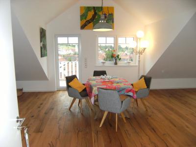 Schon beim Anblick des Schwedenhauses verfällt man in Urlaubsstimmung. Beim Betreten der FeWo werden Sie von lichtdurchfluteten Räumen mit einer Wohlfühl-Atmosphäre empfangen. Vom 8m² Balkon haben Sie einen unverbauten Blick auf die Dionysisukirche und bis hin zur Burg Landeck.