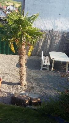 In unserem großen Garten mit sonniger Sitzecke und Palme können Ihre Kinder spielen und toben. |
