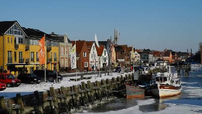 Das blaue Haus liegt im Herzen Stadt Husum am Rand der Halbinsel Eiderstedt.